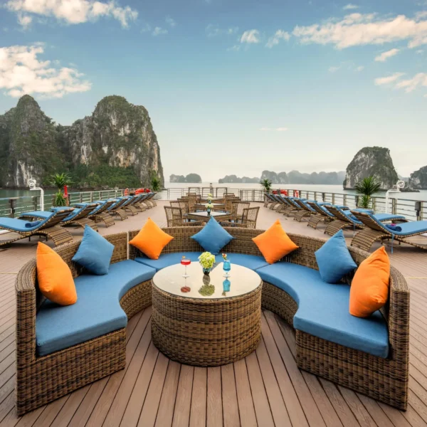 Aimee Cruises là một trong những du thuyền 5 sao nổi bật tại vịnh Hạ Long, mang đến trải nghiệm nghỉ dưỡng sang trọng và đẳng cấp. Khi lựa chọn Aimee Cruises, du khách không chỉ được tận hưởng không gian tinh tế mà còn khám phá hành trình tham quan hấp dẫn giữa kỳ quan thiên nhiên thế giới.