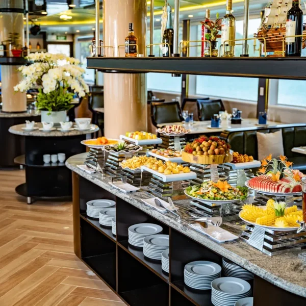 V-Dream là du thuyền tiêu chuẩn 5 sao hoàn toàn mới ở Vịnh Hạ Long. Tour trong ngày này mang đến một cách hiệu quả để trải nghiệm điểm nổi bật của Di sản Thế giới được UNESCO công nhận mang tính biểu tượng của Việt Nam, hoàn chỉnh với phương tiện di chuyển thuận tiện từ Hà Nội. Được thiết kế trên ba tầng trang nhã, V-Dream hứa hẹn một trải nghiệm tuyệt vời cho du khách. Với sức chứa lên đến 99 người, du thuyền đảm bảo một không gian ăn uống thoải mái cho tất cả khách hàng. Bữa trưa buffet ở đây được tuyển chọn bởi các đầu bếp lành nghề, đảm bảo sự tươi ngon và đa dạng trong thực đơn. Khám phá những điểm tham quan tuyệt vời nhất của Vịnh Hạ Long trong một khoảng thời gian ngắn nhưng ý nghĩa. Hãy để chúng tôi đưa bạn vào một hành trình đáng nhớ, để lại dấu ấn khó quên trong trải nghiệm Vịnh Hạ Long của bạn.